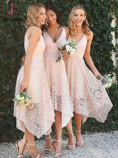 Kateprom Deep V Neck Tea Length Pink Prom Dress, Homecoming Dress KPH0030