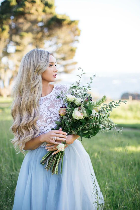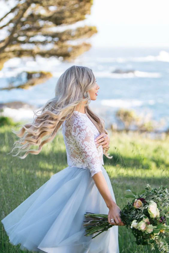 Two Piece Homecoming Dresses Half Sleeve Lace Short Prom Dress Party Dress KPP0454