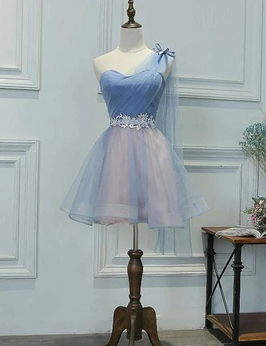 One Shoulder Tulle Sweetheart Party Dress, Short Blue Homecoming Dress KPP1496