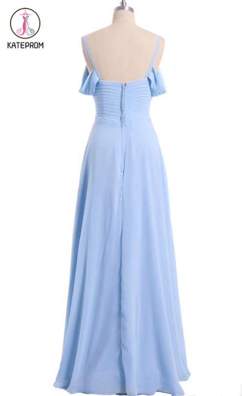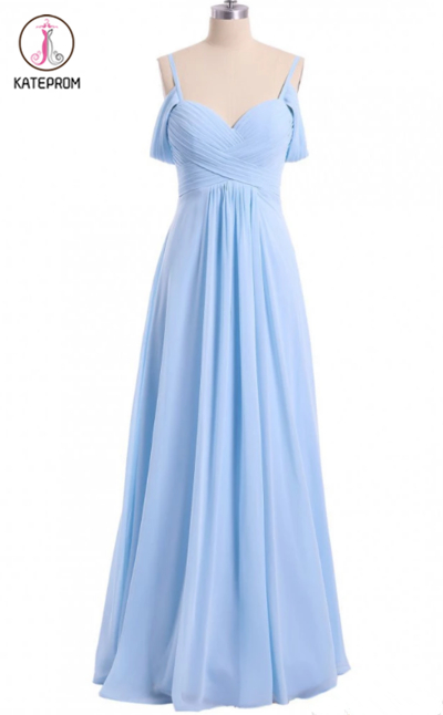 Kateprom A-line Off Shoulder Sky Blue Long Chiffon Bridesmaid Dresses KPP0178