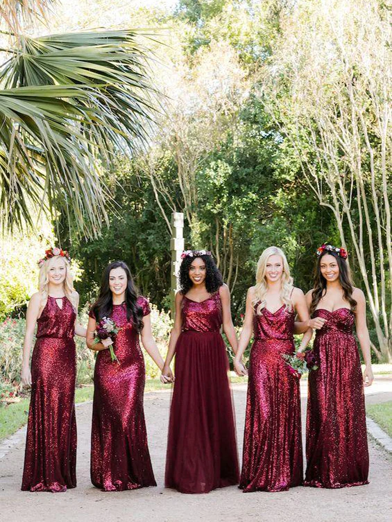 Burgundy Bridesmaid Dresses Simple Sequin Lace V-neck Open Back Bridesmaid Dresses KPP0521
