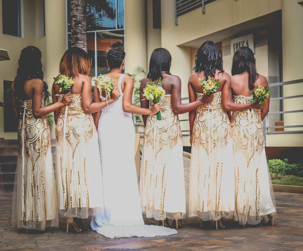 Unique Mermaid Gold Tulle Sequins Sweetheart Strapless Lace up Bridesmaid Dresses KPP0744