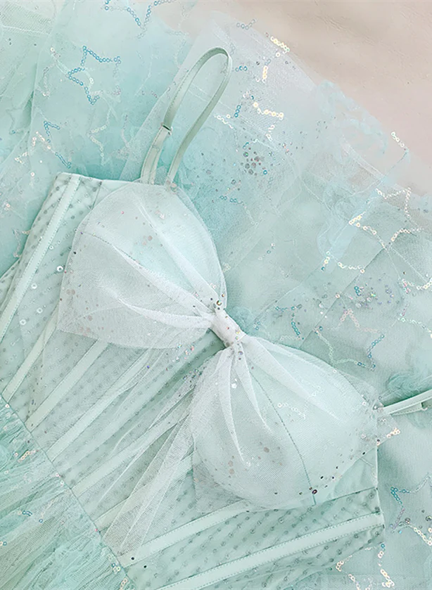 Lovely Sweethart Tulle Long A-line Formal Dress, Light Blue Tulle Prom Dress KPP1364