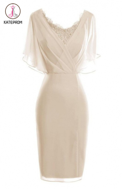 Kateprom Light Champagne Chiffon Mother of The Bride Dress with Lace KPM0004