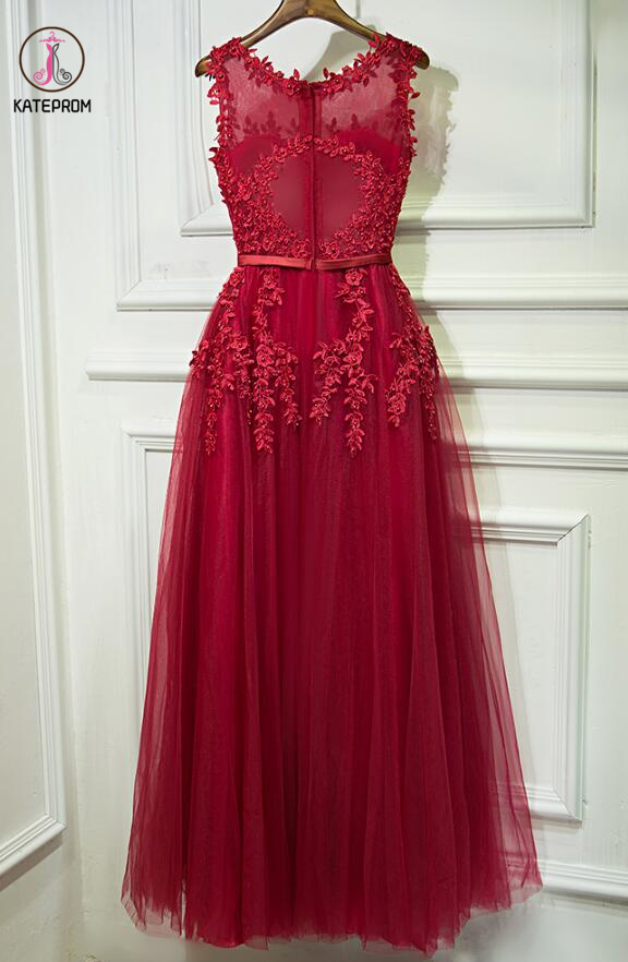 Kateprom Sexy Wine Red Long Tulle Lace Prom Dress,Evening Dress KPP0204