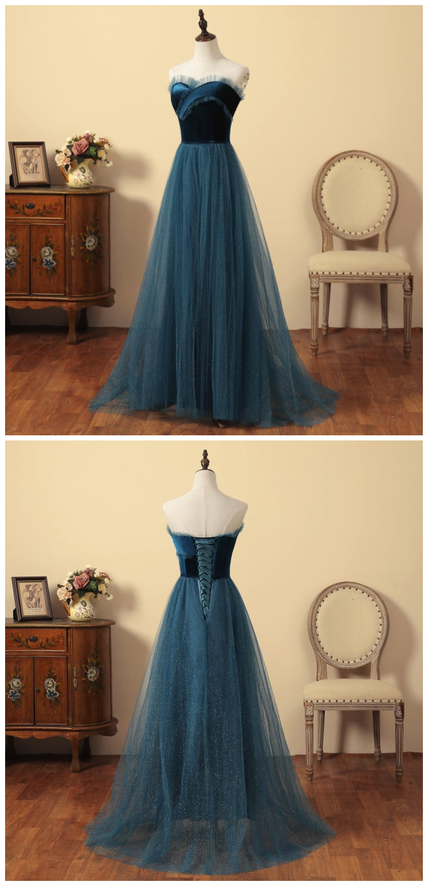 Anneprom Elegant Tulle and Velvet Tea Long Formal Dress, A-line Party Dress Evening Dress KPP0314