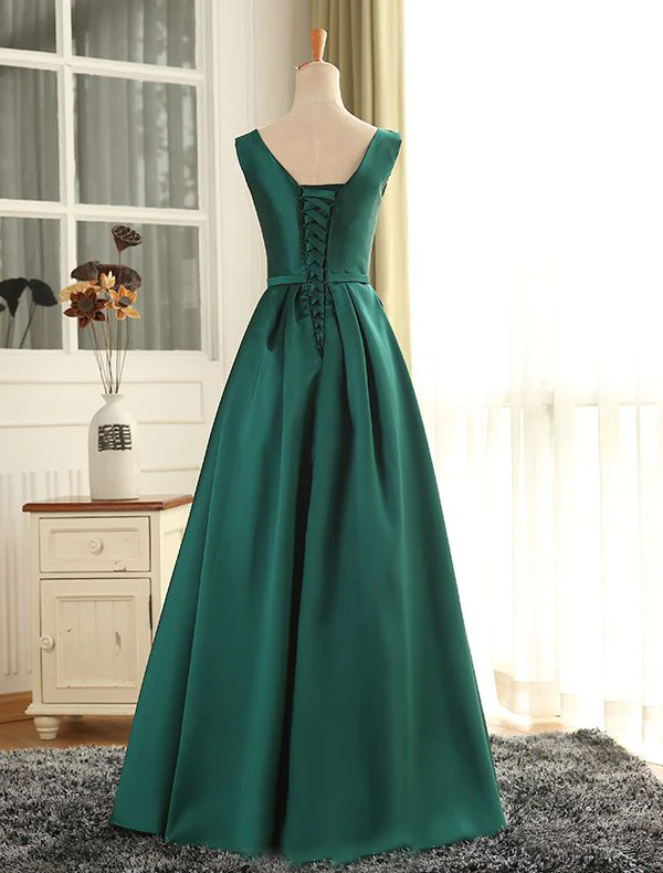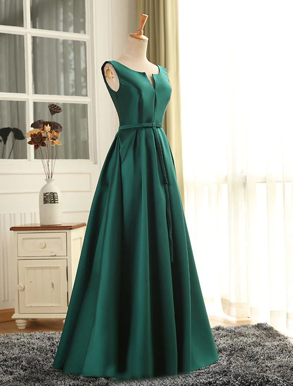 Cheap Prom Dresses Sexy Scoop Dark Green Satin Long Prom Dress/Evening Dress KPP0350