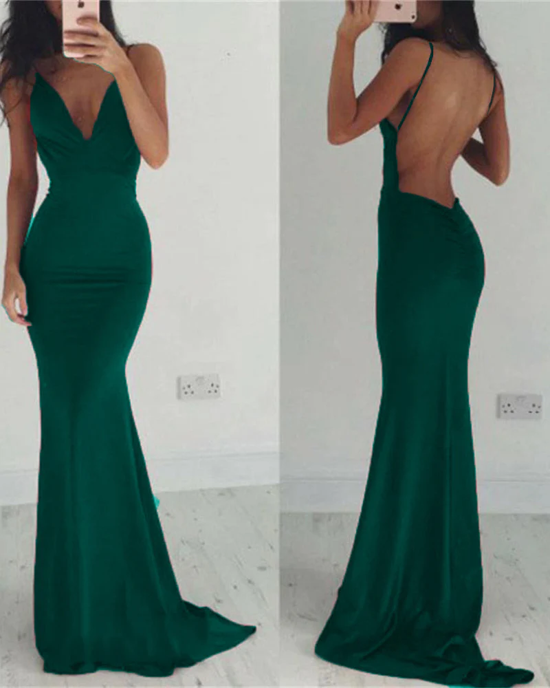 Sexy V Neck Spaghetti Straps Fitted Long Evening Party Dresses KPP0792