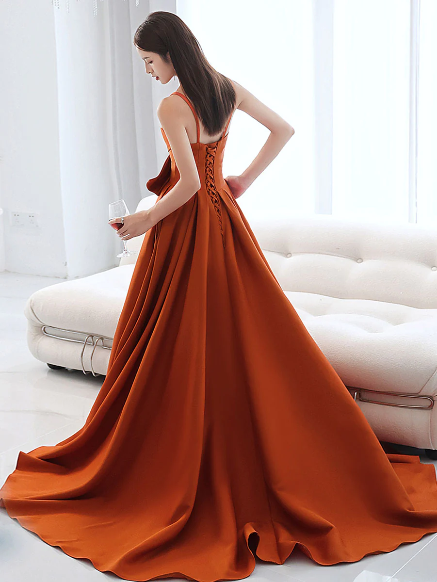 Simple orange satin long prom dress A line orange evening dress KPP1032