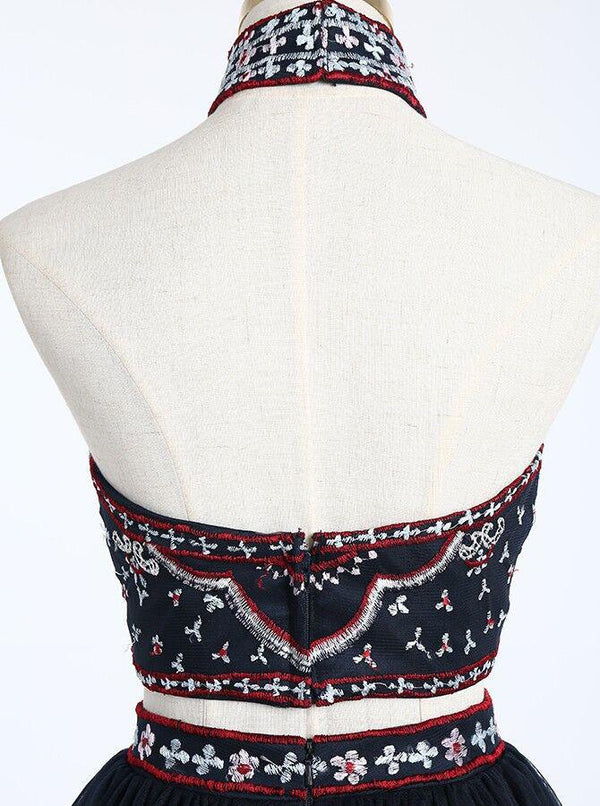 High Neck Beading Two Piece Short Backless Homecoming Dresses,2 Pieces Prom Dresses KPP1208