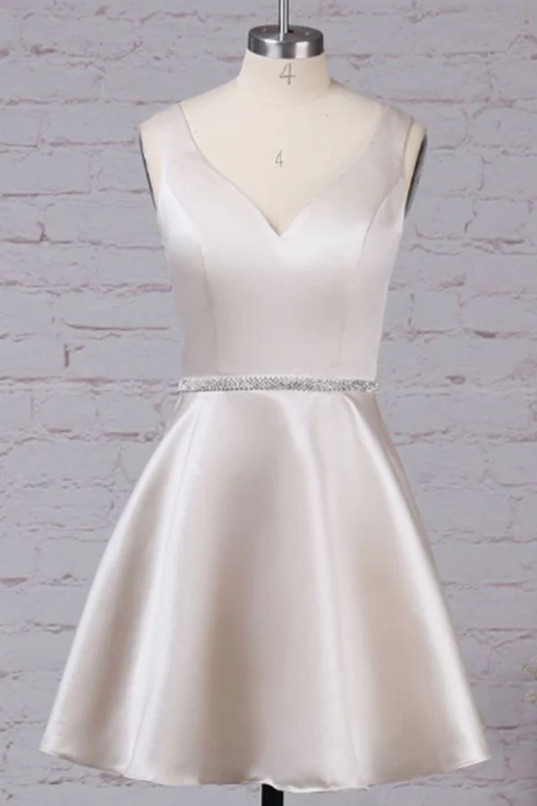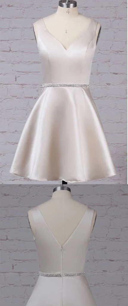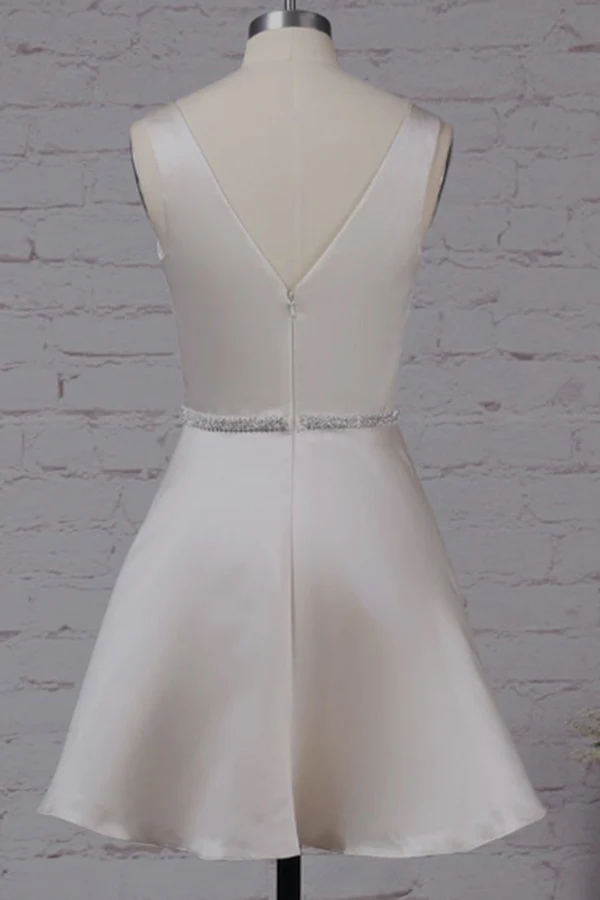Luxury Satin Sleeveless V Neck With Beaded Homecoming Dresses KPP1165
