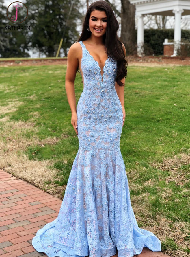 Kateprom Gorgeous Mermaid Blue Lace Prom Dress,Sexy Evening Dress KPP00007