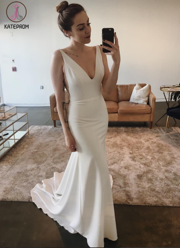 Kateprom Sexy V Neck Sleeveless Mermaid Prom Dress, Open Back Evening Dress KPP00009