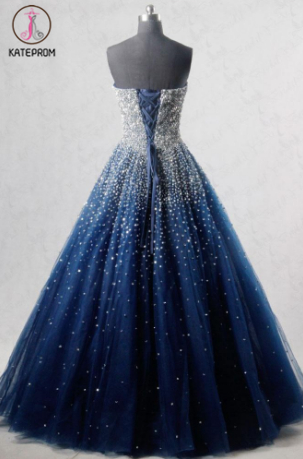 Kateprom Sexy A Line Blue Long Prom Dress with Beading ,Evening Dresses KPP00012