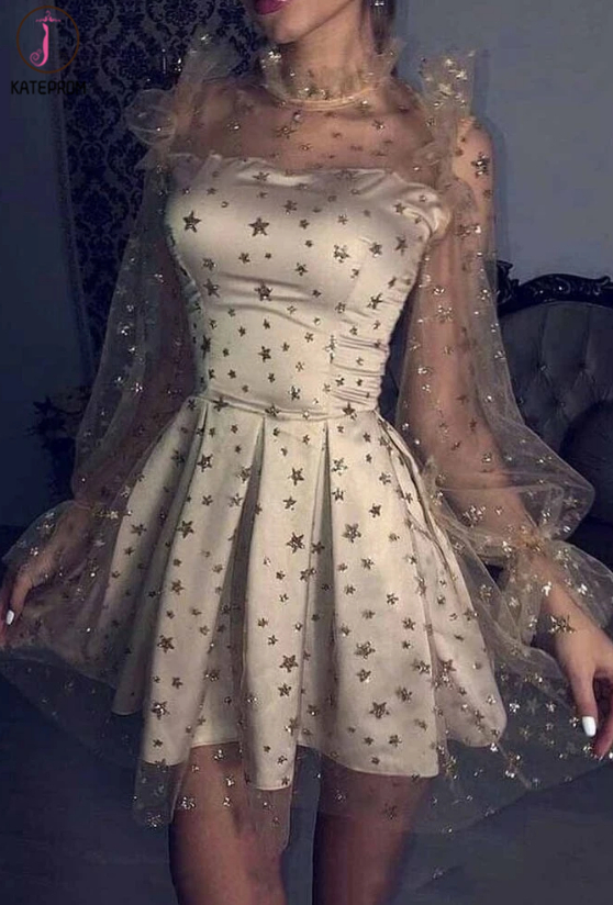 Kateprom Cute Tulle Star Short Homecoming Dresses ,Long Sleeve Knee Short Prom Dresses KPH00009