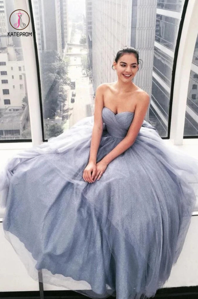 Kateprom Sexy Strapless Grey Sweetheart Long Prom Dresses, Cheap Evening Dresses KPP0087