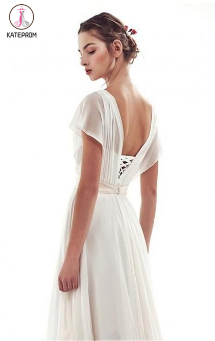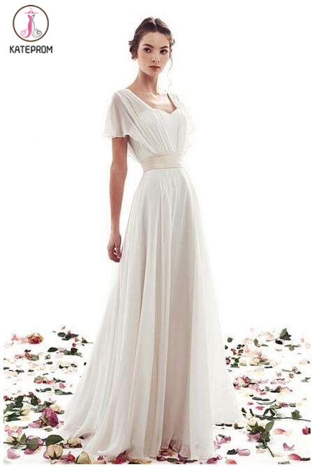 Kateprom Lace-up Simple Short Sleeves A-line Vintage Wedding Dress KPW0035