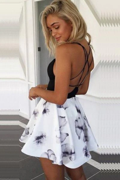 Chic Spaghetti Straps Print Homecoming Dress A-line Short Prom Gown Party Dress KPP0549