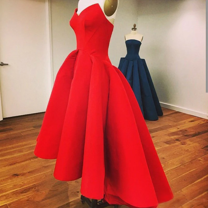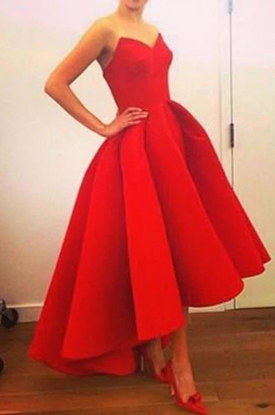 Red Vintage High Low Strapless Sleeveless Formal Prom Dresses KPP0637