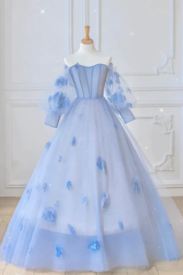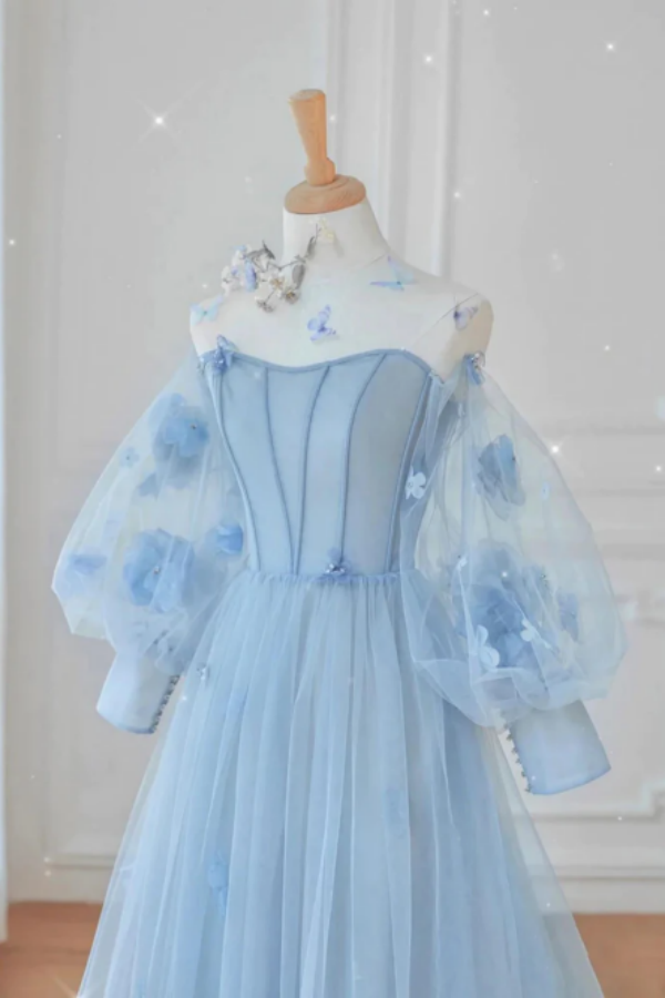 Cute Light Blue Long Sleeves Elegant Princess Dresses Prom Dresses KPP1549