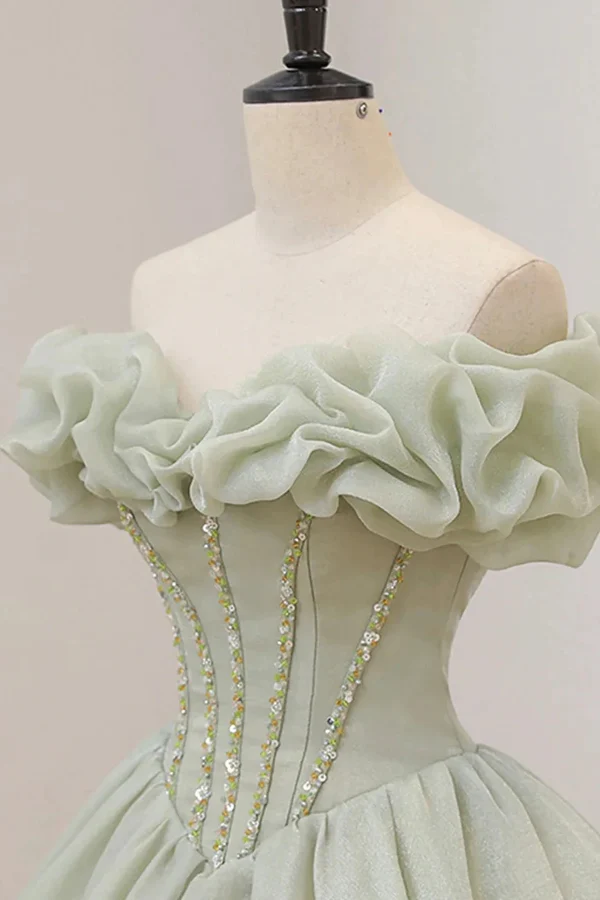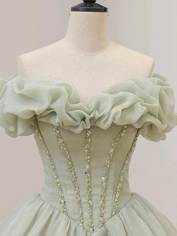 Off The Shoulder Green Prom Dress, Princess Quinceanera Dresses With Sequin KPP1600