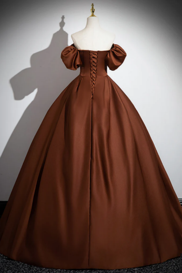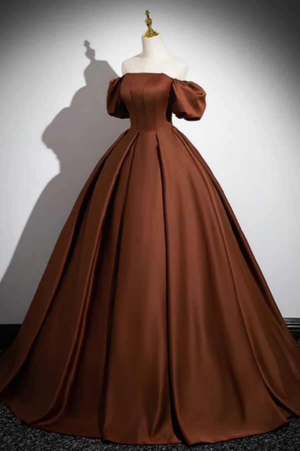 Brown A Line Satin Long Prom Dress, Brown Long Formal Dress KPP1622
