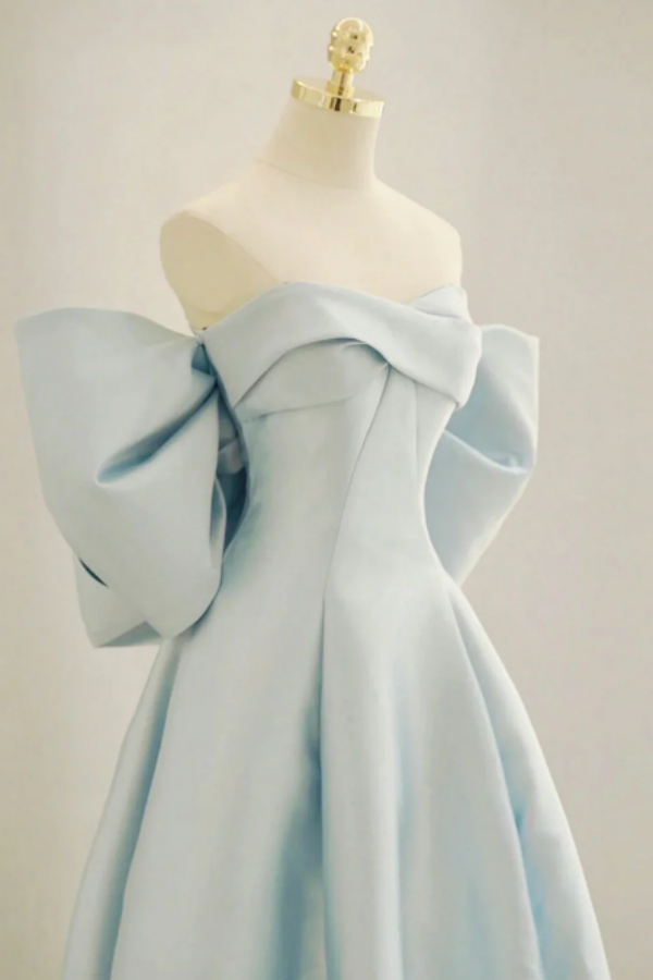 Off the Shoulder Blue Satin Long Prom Dresses, Off Shoulder Blue Long Formal Evening Dresses KPP1630