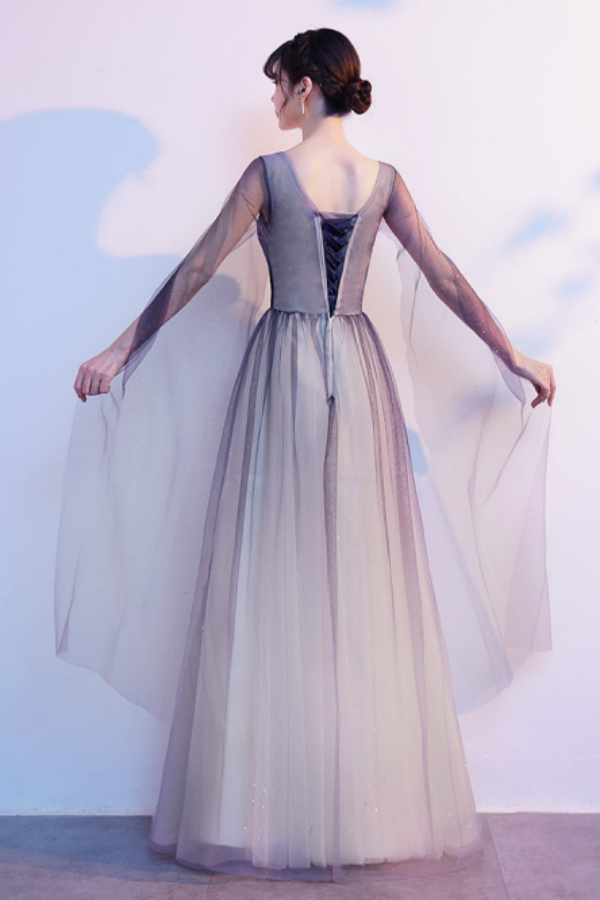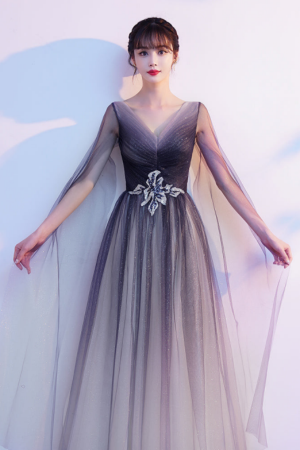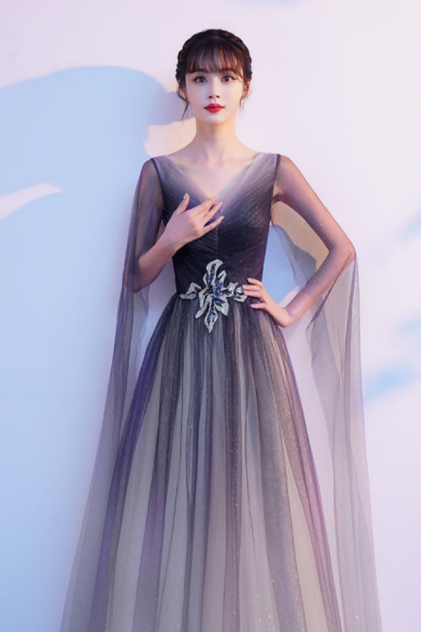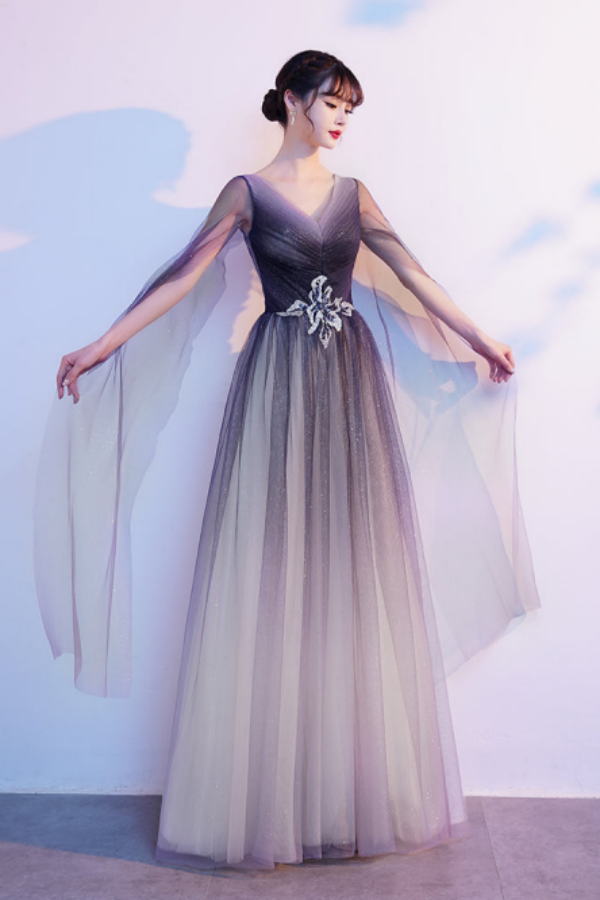 Tulle Gradient V Neckline Tulle Party Dress, A Line Gradient Evening Dress Party Dress KPP1633