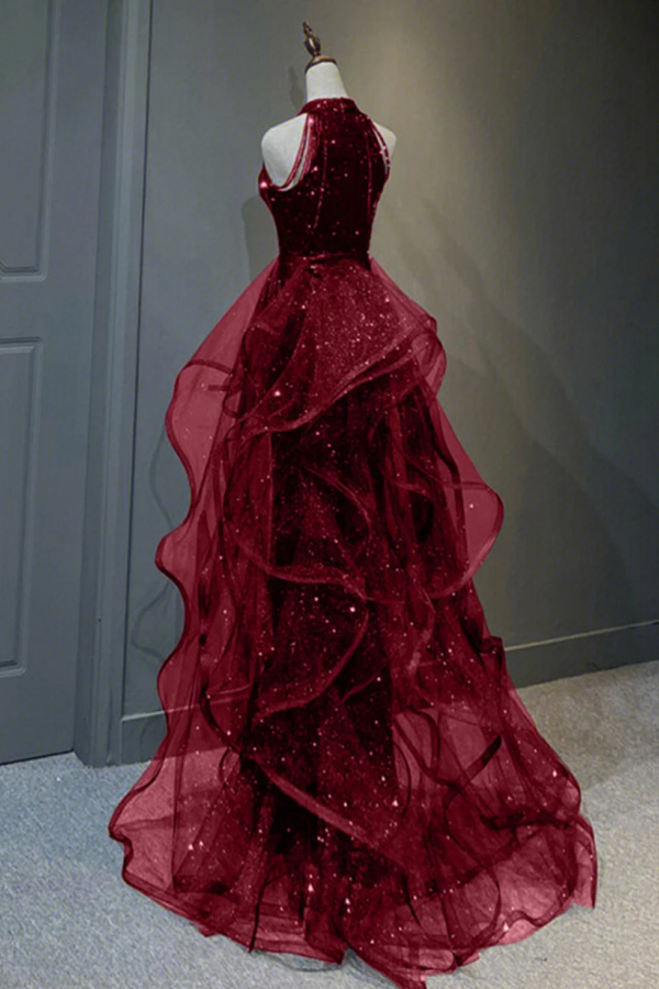 Wine Red Tulle and Sequins New Style Prom Dress, Wine Red Long Evening Dress KPP1653