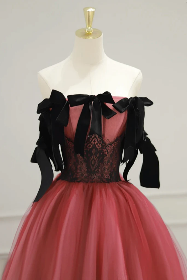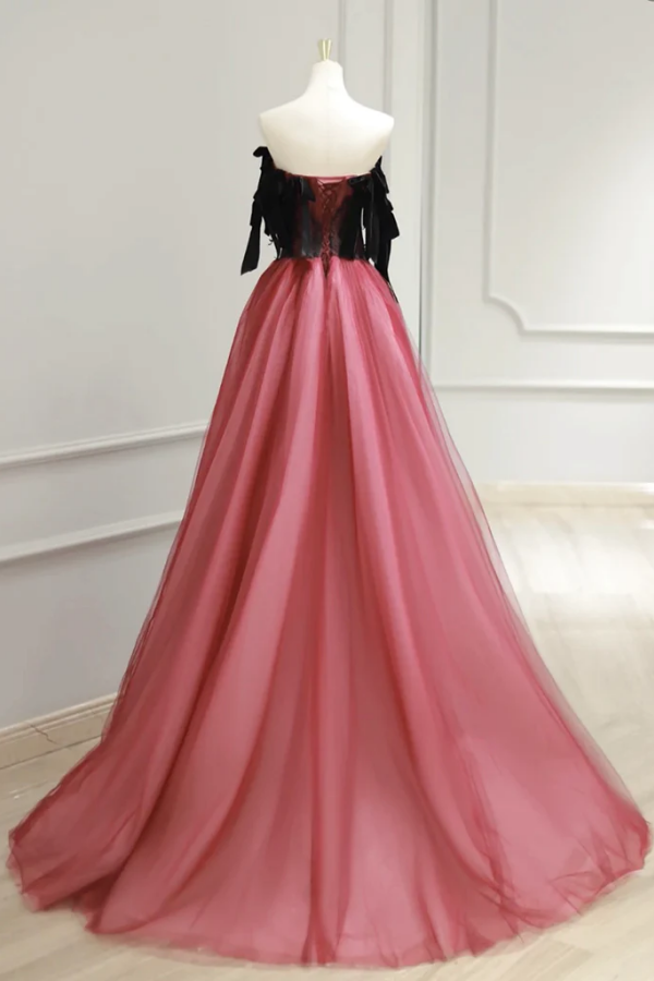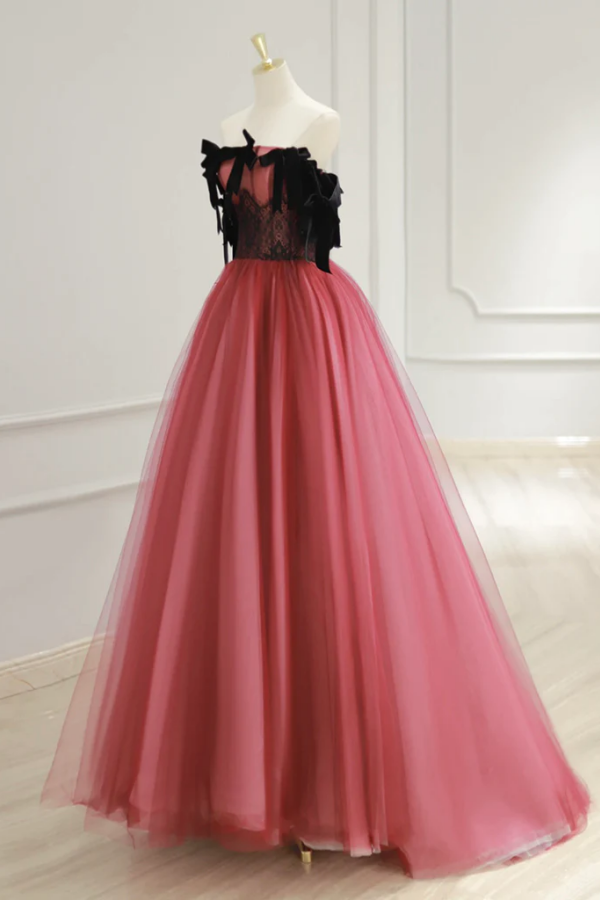 A Line Tulle Watermelon Red Long Prom Dress, Watermelon Red Tulle Long Formal Dress KPP1783